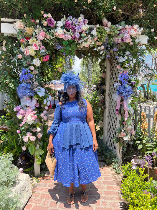 Blue Seshoeshoe Print Dress - Pricing Available upon Request